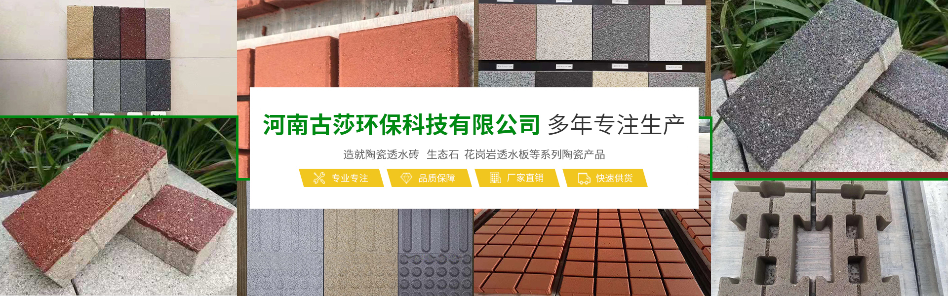 河南古莎環保科技有限公司總坐落于交通樞紐城市鄭州,是一家具備研發、生產、銷售能力為一體的綜合性現代化陶瓷企業。本公司專業生產經營生態陶瓷透水磚、生態鋪石、PC仿石材透水磚、PC仿石材景墻磚、普通透水磚、燒結磚等系列產品,完善的研發團隊,完善的生產流水線設備,打造完善的陶瓷企業。古莎環??萍棘F代化陶瓷企業是美化城市,改善生活環境質量的生態環保產品,可廣泛應用于公共建筑廣場、城市道路、公園、藝術景觀、廊道、房地產、別墅住宅小區、地鐵口、車站、高速公路服務區等。古莎環??萍荚谠刑沾善髽I基礎上,另拓展園林綠化、市政施工、瀝青包工包料施工、公路維修等業務板塊,專業培訓了一些園林綠化、市政施工技術人員,并有多年的施工養護經驗以及建筑工程經驗。保證市政工程施工質量以及園林綠化后期養護規范化、專業化。古莎環??萍妓裱钠髽I與品牌發展思路,是奠定在品質與產品應用之上。環保理念由我們共同倡導,理性思考,以推進步,感性溝通,以共建優越。古莎環保科技與大家真誠合作,攜手共進,為助力海綿城市建設,建筑高品質的綠色城市生活貢獻一份力量!